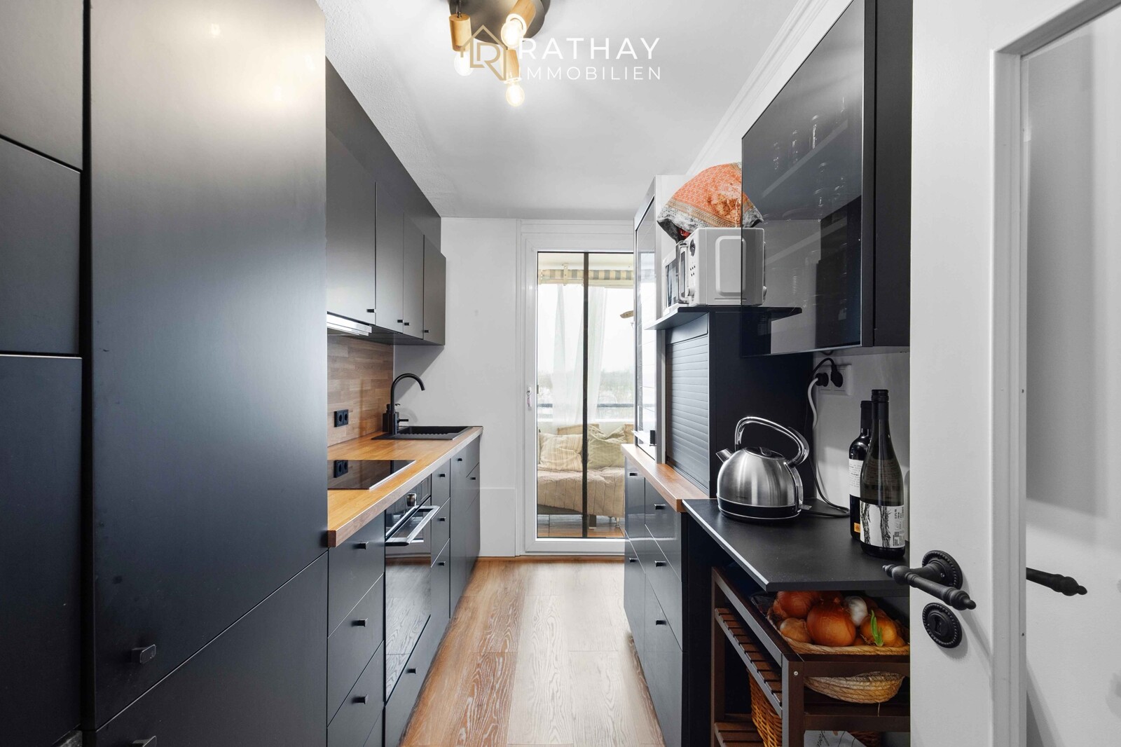 Die moderne Einbauküche wurde erst im Jahr 2024 installiert und fügt sich harmonisch in den Wohnbereich ein. Hochwertiger Teppichboden in den Wohnräumen sorgt für eine warme Wohnatmosphäre, während die Küche mit neuem Laminatboden ausgestattet wurde.